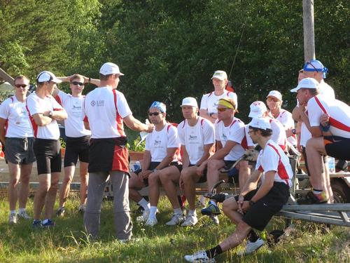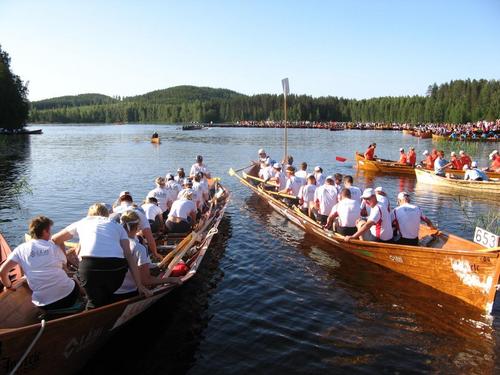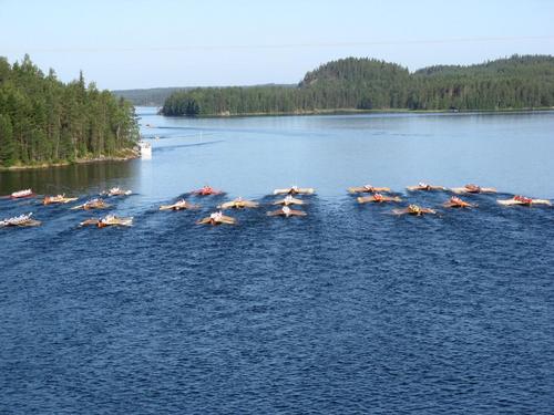 Jouteleen sekajoukkue on juuri startannut SM 10 km:n matkalle Kangasniemessä elokuussa 2015. Kuva Puulan soutu Facebook.